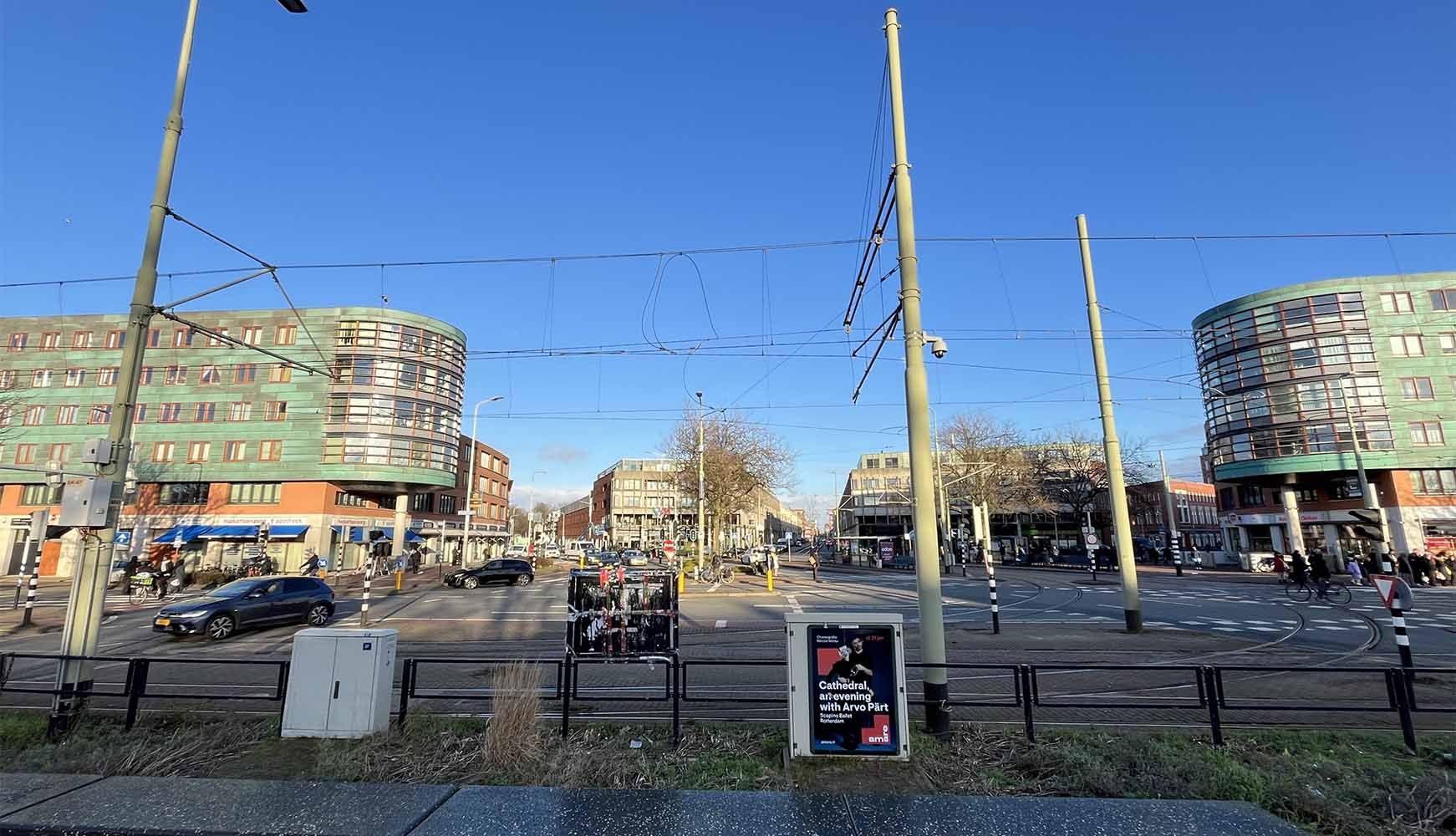 Anno 2025 blijk ik toch op mijn oma te lijken. Het eerste deel van de markt heeft nu veel meer aantrekkingskracht op mij dan het tweede. Gelukkig heb ik mezelf beschermd tegen impuls-aankopen door alleen mijn telefoon mee te nemen. Hoewel? Ook hier zie ik bordjes: Pinnen? Graag! Wegwezen dus. Via het onoverzichtelijke Hobbema-plein. Al zal de boel hier hoe dan ook op de schop gaan, omdat over een jaar of twee ook op lijn 6 nieuwe, bredere trams gaan rijden: dat zal nog wel even zo blijven.