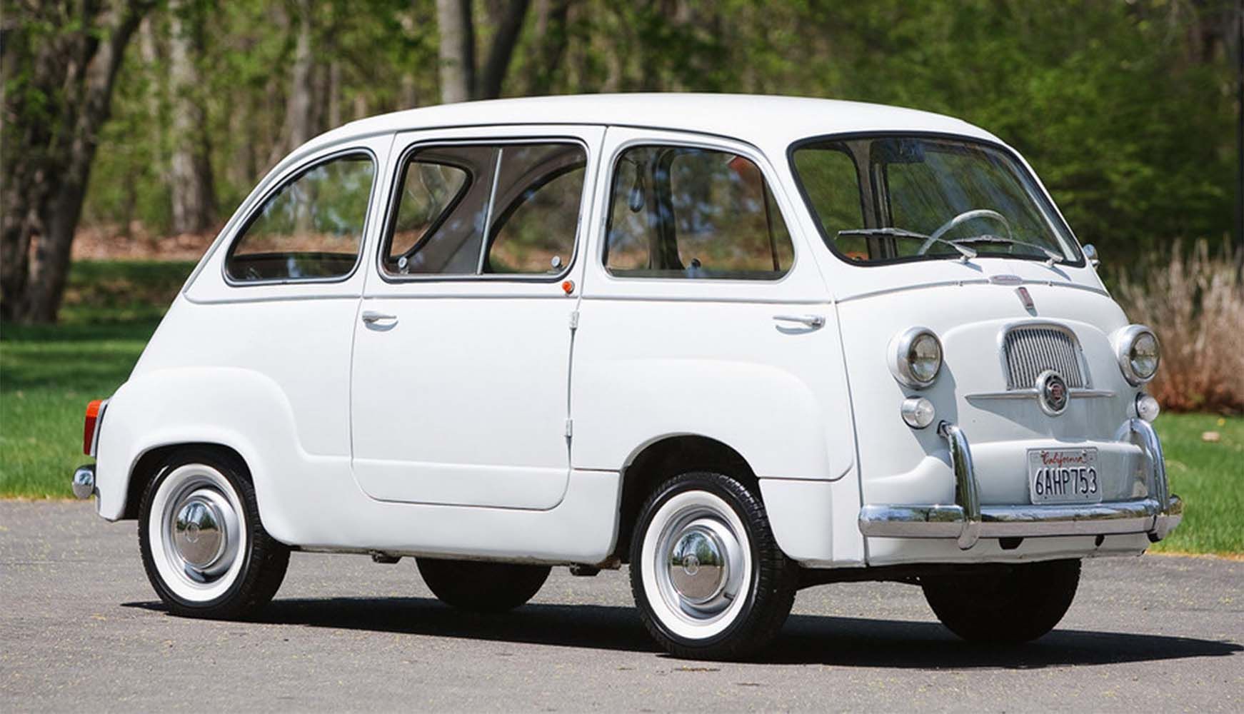 Dat herinner ik mij nog van de Prinses Ireneschool aan de Sillestraat. En wat dit te maken heeft met de Fiat 600D Multipla? Helemaal niets, maar het was rond diezelfde tijd dat de Multipla in het Haagse rondreed. Tja, de Multipla is nooit kandidaat geweest voor een schoonheidsprijs, maar het was wel de meest praktische mini-MPV die de historie ooit gekend heeft. Een MPV toen het woord nog niet eens bestond. De basis was een Fiat 600, waarvan de neus was weggehaald en er in het midden een stuk tussen was geplaatst en achter het achterportier was het gewoon weer een 600. Als je er nu naar kijkt natuurlijk levensgevaarlijk, want zonder neus was je als bestuurder en als passagier voorin bij een frontale botsing al snel richting begraafplaats Oud Eik en Duinen, maar dat terzijde. Uitgangspunt was natuurlijk een ruime auto. Voorin het standaard 600-dashboard met rechts tegen de voorkant het rechtopstaande reservewiel. Voorin kon je met drie personen zitten. Daarachter twee opklapbare campingstoeltjes en daarachter op rij nog twee soortgelijke stoeltjes die omlaag geklapt een enorme bagageruimte gaven. Uniek voor die tijd. Achterin de motor met 763 cc en 32 pk en een topsnelheid van rond de 100 kilometer. In 1961 kostte hij 5.896 gulden en bleef in productie tot 1966. Fascinerend als je het dashboard bekijkt, vergeleken met nu. Een wit stuur met twee spaken en een zwarte drukcirkel in het midden als claxon. Niets meer en niets minder. Daarachter een wat ovale, witte unit met de snelheids-meter als klok en een benzine- en watertemperatuurmeter met een paar controlelampjes. Op het metalen dashboard in het midden een asbakje in Madurodam formaat met daaronder een chroomplaatje met in het midden het contactslot en links en rechts daarvan een metalen tuimelschakelaar voor de verlichting en de ruitenwissers, en dat was alles. O ja, onder het dashboard nog een rubber drukknop voor de ruitensproeiers. Achterin lag het gewone 600 motortje en dat was al geen sprinter met vier personen aan boord, dus laat staan hoe dat ging met zeven personen aan boord. De wegligging van deze Multipla kon je natuurlijk wel raden. Desalniettemin werden met dit soort auto’s toch flinke vakantie-afstanden afgelegd. Hoewel de gewone 600 al snel overging van de ‘zelfmoord’-voorportieren die aan de voorkant openden, naar de veiliger uitvoering, bleef de Multipla ze houden tot 1966, waarna het model van de markt verdween. Een bijzondere auto!