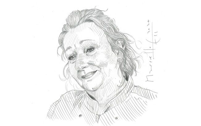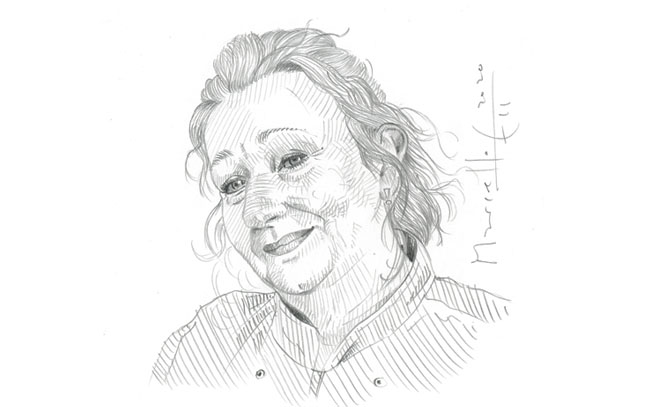 Sinds 2008 zit de Italiaanse traiteur That’s Amore bij onze galerie om de hoek op de Laan van Meerdervoort. Vanaf dag één was het druk in de zaak van Saro en zijn vrouw Simonetta (op de tekening). Dat is natuurlijk niet voor niets, want That’s Amore heeft een prachtig assortiment Italiaanse delicatessen, met name afkomstig uit kleine familiebedrijven. En dat weten ze hier in de buurt allemaal. Afhalen is hier normaal, zowel voor de lunch als voor het diner. Voordat de coronaproblemen begonnen kon je er achter in de zaal ook eten. "Dat doen we nu voorlopig even niet", zo vertelde Saro ons, "we hebben gelukkig druk genoeg met afhalers".