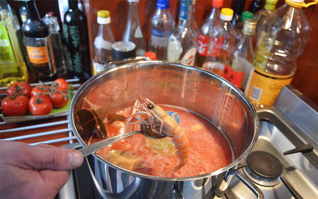 • Mocht je het vlees van de Langoustines willen gebruiken, dan kan je deze pellen en later aan de soep toevoegen. Nog lekkerder is het om er verse kreeft aan toe te voegen.