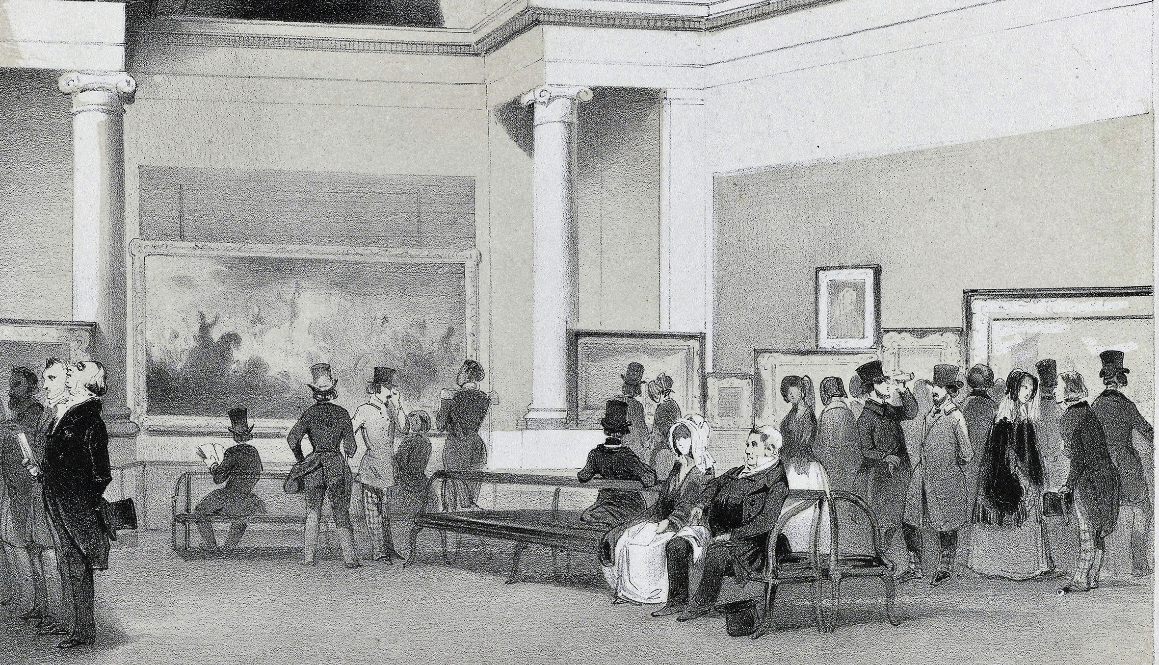 Tentoonstelling van schilderijen van Levende Meesters in Den Haag in 1845. Maker anoniem. Collectie Rijksmuseum Amsterdam -