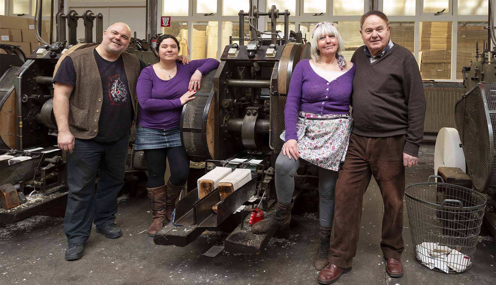 In de fabriekshal staan zo’n tien schaaltjesmachines te stampen alsof ze zo uit een industriële Efteling komen. Sommige mensen komen hier binnen en vragen zich af of ze in de maling worden genomen. “Het machine-park is oud, maar functioneert optimaal en levert nog steeds kwaliteit af. Waarom zou je het vervangen als je er mee uit de voeten kunt?”, verduidelijkt Sandro. In het aangrenzende directiekantoor tref je geen computers of eigentijdse telefoons aan. Rekeningen, vrachtbrieven en orders worden gewoon getypt op een oude schrijfmachine en de bakelieten telefoons doen hun werk. De aantallen en ordernummers van bestellingen worden dus gewoon telefonisch doorgegeven, vergezeld van een gezellig praatje. “Dat is vooral snel en o zo makkelijk”, vertelt Sandro enthousiast.