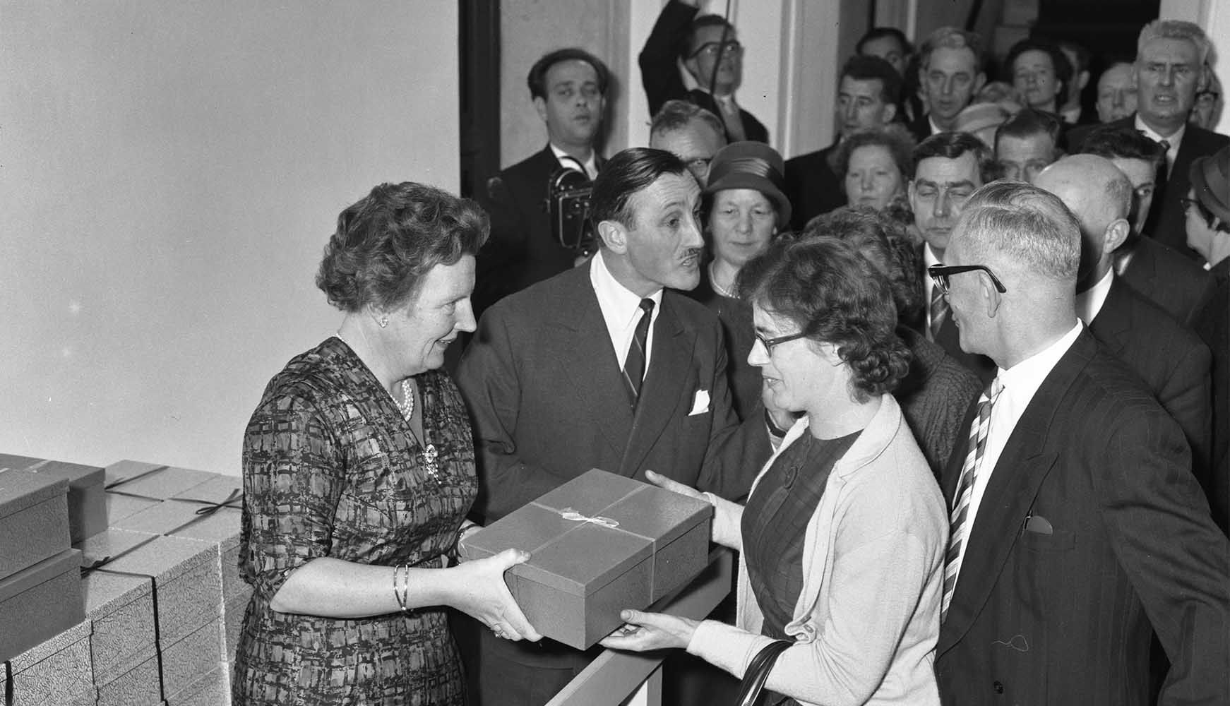 Kerstfeest van het koninklijk gezin met het personeel in Amsterdam, 1961. Foto: Wim van Rossem, Anefo, Nationaal Archief -