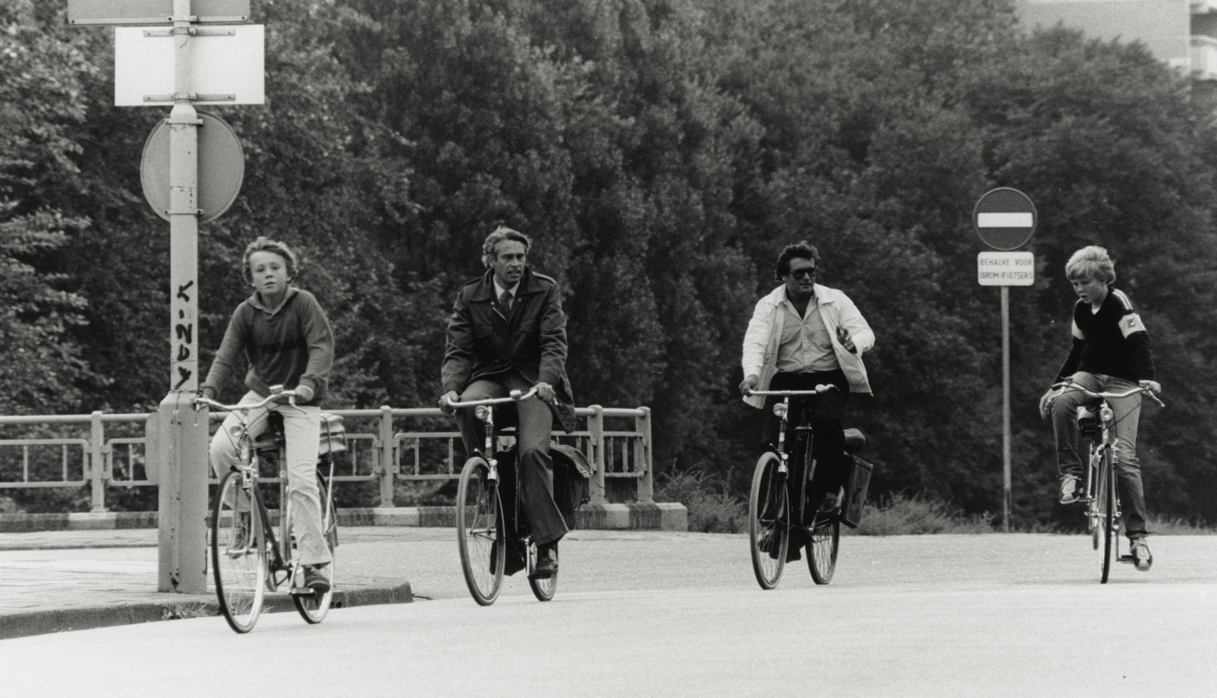Haringkade, de prinsen Johan Friso (links) en Willem-Alexander (rechts) fietsen naar school. Foto: Stokvis, collectie HGA -