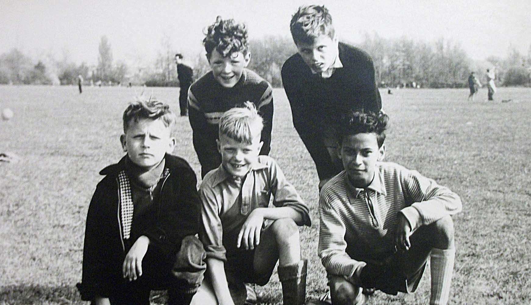 Voetballen Zuiderpark. Ik sta linksboven. Linksonder naar rechts zijn Ronnie, Jan, Johnny en de vijfde is onbekend -