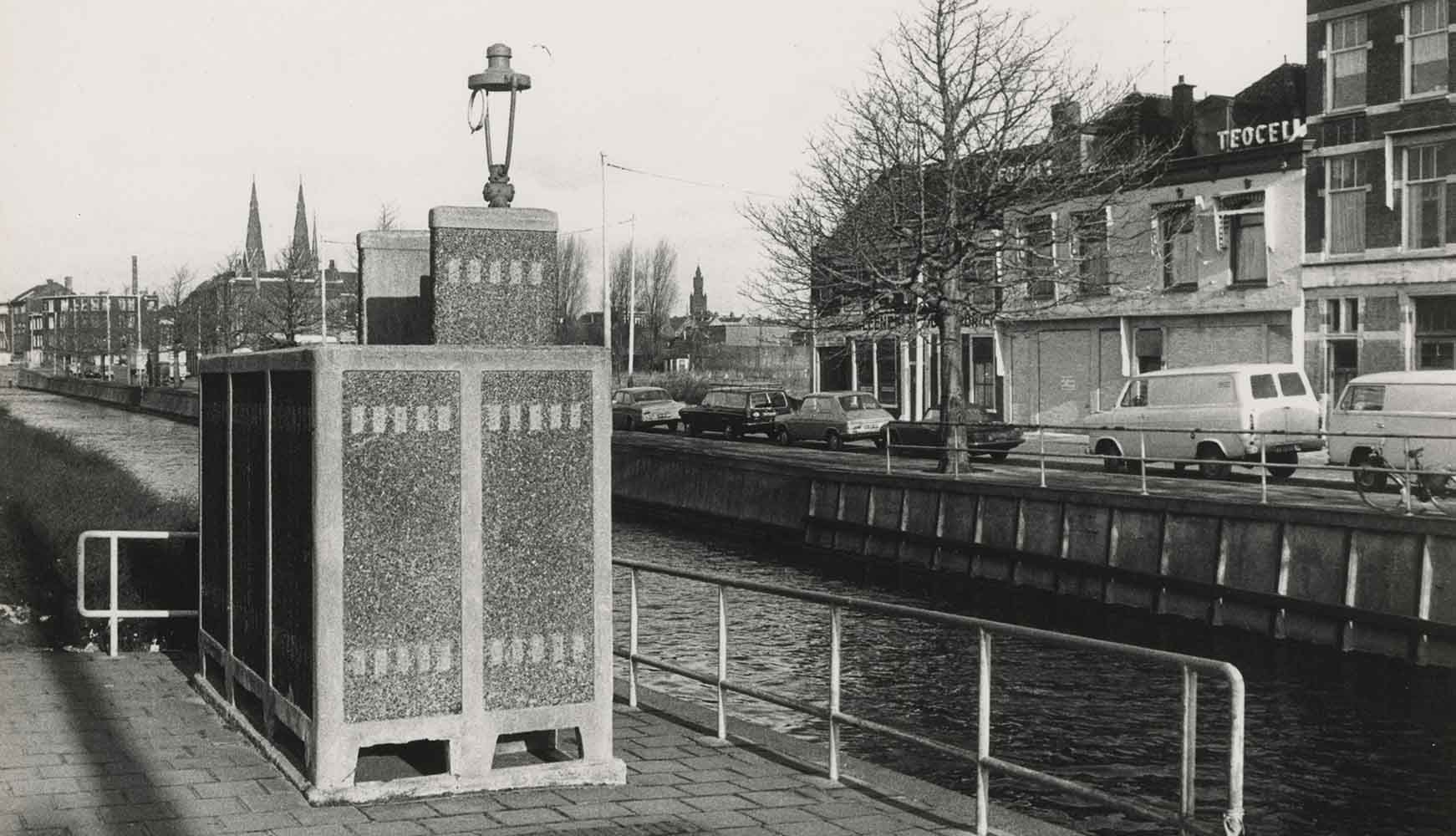 Noord-West-Buitensingel met een urinoir; aan de overkant van het water Bij de Westermolens. Foto uit 1975, Jan Stegeman, Haags Gemeentearchief -