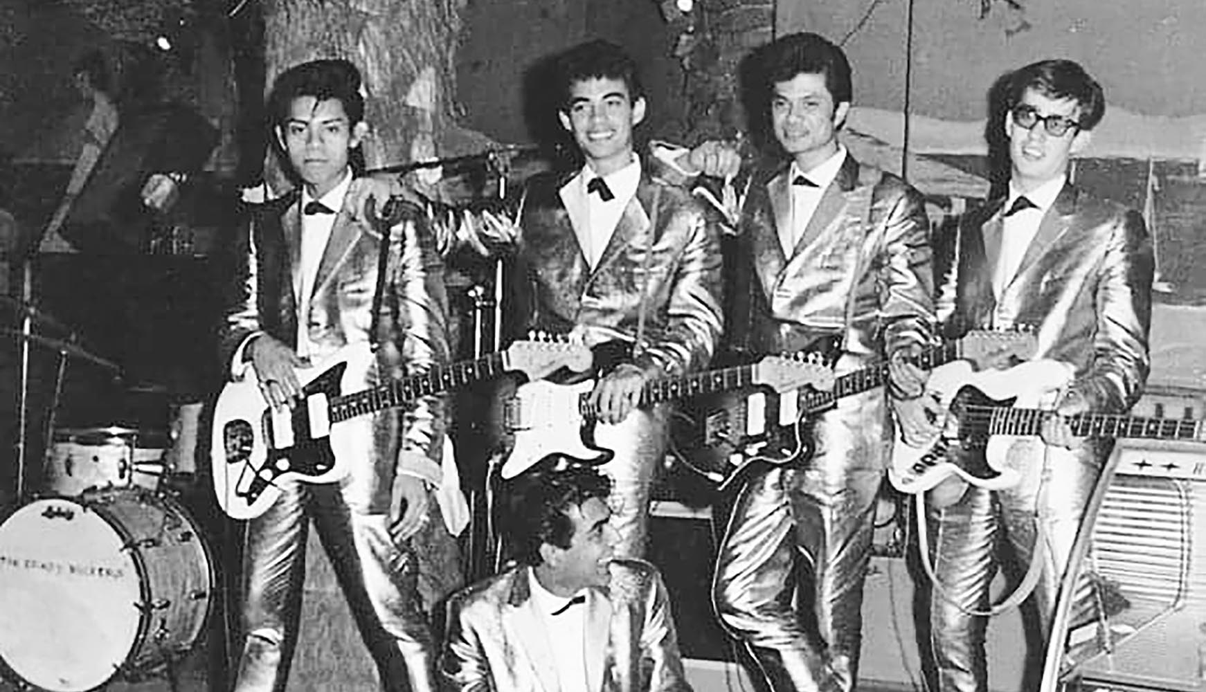 Eddy Chatelin, Woody Brunings, Harry Berg, Pim Veeren en zittend Sydney Rampersad (oprichter Crazy Rockers) -