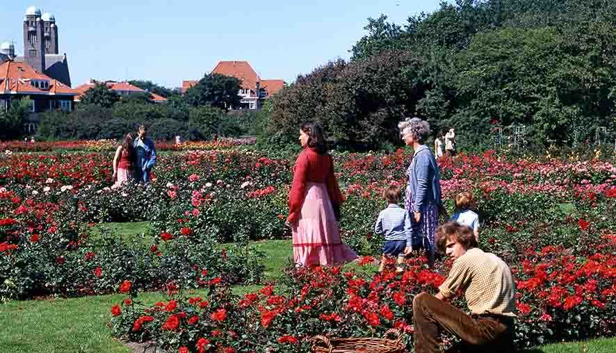 Westbroekpark in de City of Roses, in de jaren zeventig. Op de achtergrond de Badkapel. Foto: Stokvis, collectie HGA -