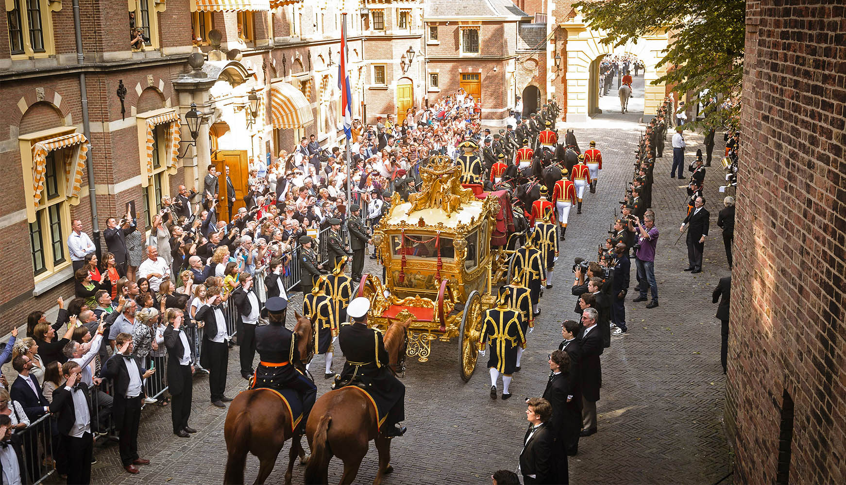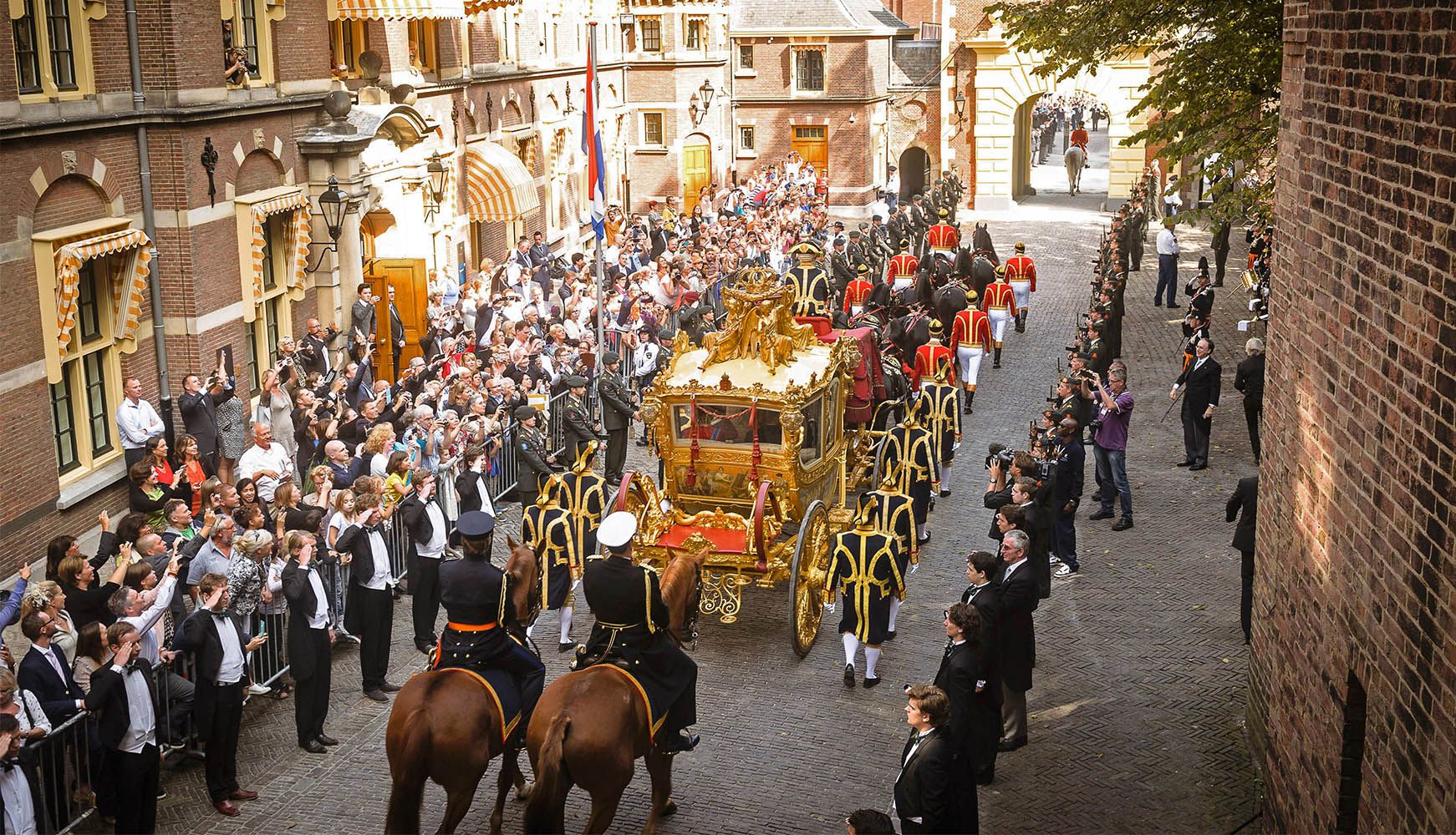 Tijdens Prinsjesdag zijn de leerlingen van scholen in Den Haag vrij en dat is op zich al iets feestelijks. Ik ging vroeger samen met mijn vader wel eens kijken wat er allemaal gebeurde op die dag. Omdat mijn vader penningmeester van het Algemeen Haags Comité was, een comité dat vrijwel alle festiviteiten in Den Haag organiseerde, konden we de stoet vanaf een prima plekje langs zien komen. Vooral de Gouden Koets maakte indruk op mij, nog los van al die militairen in hun eerste grijs. Over zoiets las je in boeken, maar in werkelijkheid? Alsof er zich een sprookje voor mijn ogen afspeelde en misschien was dat ook wel zo.