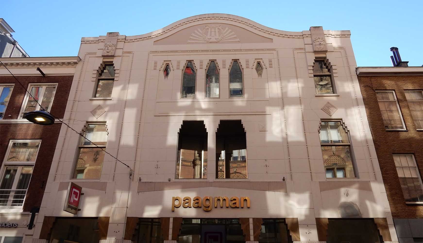 Waar we nu de aan de Lange Poten de centrumvestiging van Boekhandel Paagman binnen kunnen lopen, was tot 1977 de bioscoop Rex. Het gebouw is uit 1919, ontworpen door de Haagse architect Cornelis van den Hoogenband in opdracht van de N.V. Maatschappij tot Exploitatie van Hotels, Restaurants & Koffiehuizen. In 1977 brandde het pand volledig uit en daarna is er achter de gevel een vrijwel geheel nieuw pand opgetrokken.