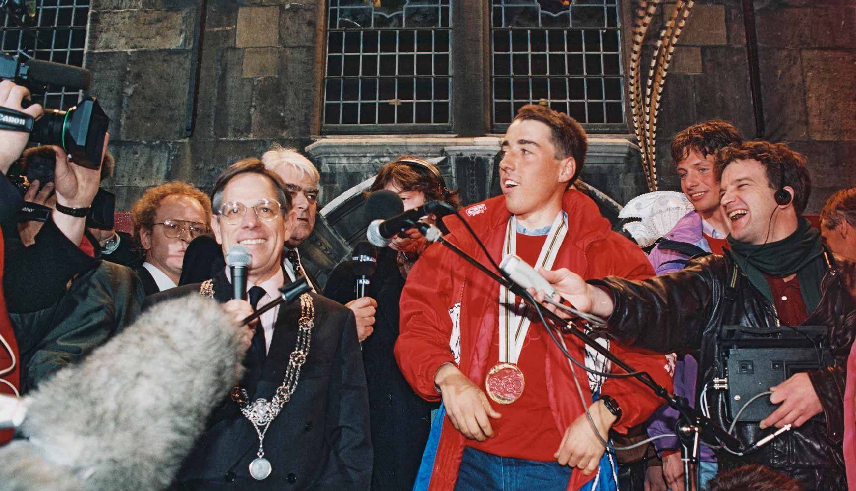 In de eerste plaats kijkt hij terug op de bijzondere omstandigheden, want op de Olympische Spelen waarbij voor het laatst op een buitenbaan werd gereden, waren de omstandigheden belabberd. Maar Hagenaar Bart Veldkamp (die een vast duo vormde met zijn begeleider pa Veldkamp en Ab Krook als coach had) trof het in die 10 km, omdat de weersomstandigheden juist toen voor iedereen gelijk waren en hij concurrent Jahann Olav Koss 2,5 seconde voor bleef, nadat hij de Italiaan Roberto Sigell in zijn eigen 10 km bijna op een ronde had gereden. En dan komt de eerste vergelijking met de omstandigheden nu. Bart vertelt: “Nu vliegt de hele Olympische ploeg gezamenlijk in een vliegtuig terug naar huis, ik reed toen samen met de andere Hagenaar Thomas Bos (die 11e werd) terug naar huis. Maar ik wist niet wat me daar te wachten stond. Er was ons alleen gevraagd om onderweg even te stoppen bij een wegrestaurant, alwaar we geïnformeerd werden over het verdere ritueel. En tja, toen was er die grandioze huldiging, eerst op het Oude Stadhuis aan de Groenmarkt in aanwezigheid van Burgemeester Havermans en later gevolgd door die op de Frederik Hendriklaan. Er was een heus podium gebouwd en duizenden mensen waren aanwezig. Dat was echt fantastisch.” Overigens maakte ondergetekende die huldiging op de Fred live mee, want ook mijn vrouw en ik vonden het uniek om de gouden Hagenaar toe te juichen.