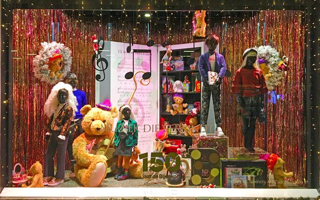 Ik zie overal chocoladekerstmannen. Maar Sinterklaas zie ik niet. Ook niet van chocola. (Zwarte) Piet is er trouwens ook niet. In geen enkele etalage. Ik zie speelgoed, gezellig gedekte tafels, feestelijke kleding. Besneeuwde kerstbomen. Teddyberen. Veel, heel veel teddyberen. Ergens ontwaar ik wel de bladmuziek van het Sinterklaasliedje O, kom er eens