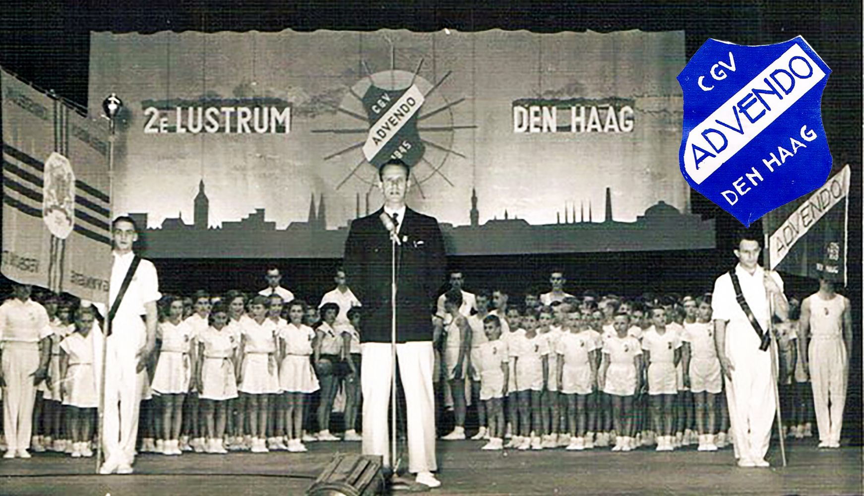 De eerste grote uitvoering van Advendo was op 28 september 1946 in een uitverkocht Gebouw van Kunsten en Wetenschappen in Den Haag (in december 1964 is het gebouw volledig afgebrand). De recensies waren geweldig! Als dank voor deze zeer geslaagde uitvoering ontving de voorzitter een schemerlamp voorzien van lectuurbak. Vanwege de drukte met zijn Advendo heeft de heer Zuydervelt nooit veel tijd gehad om van dit cadeau te genieten. De familie Van der Leeden voorzag Advendo van het grootste aantal leden. Aan het eind van de uitvoering kwam de hele familie op het toneel en kreeg een groot applaus.