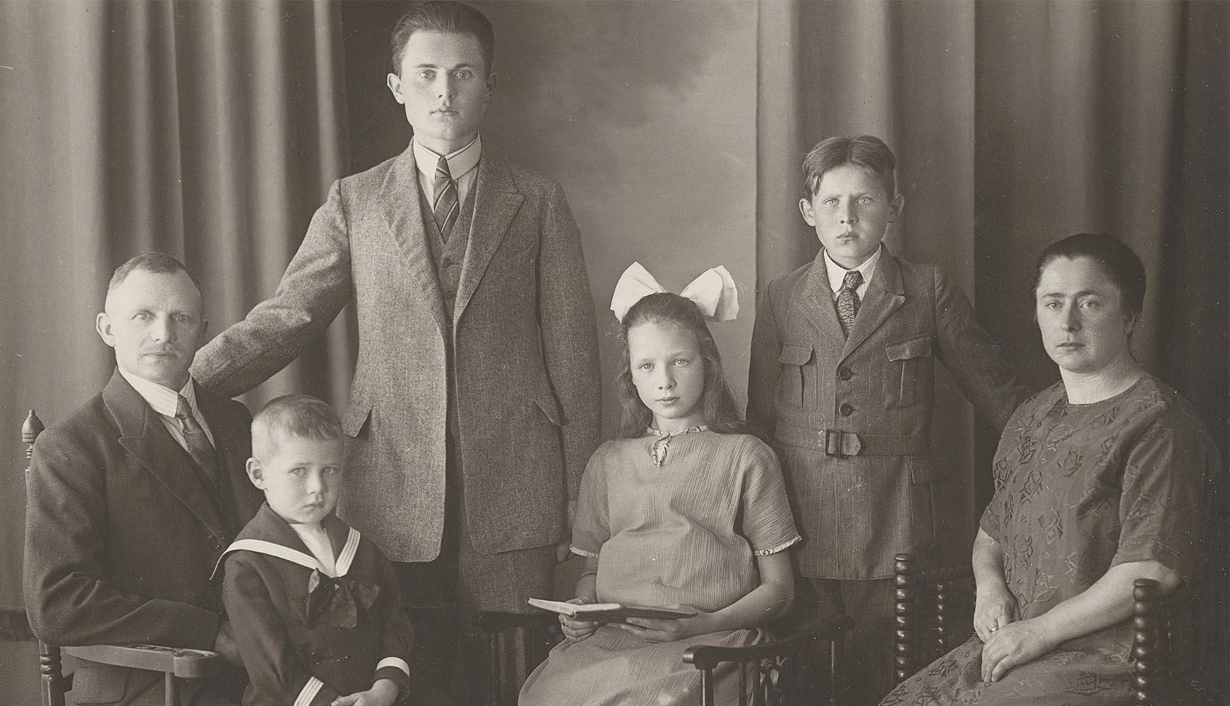 Het gezin van bakker De Graaf. Toon staat naast zijn moeder. -