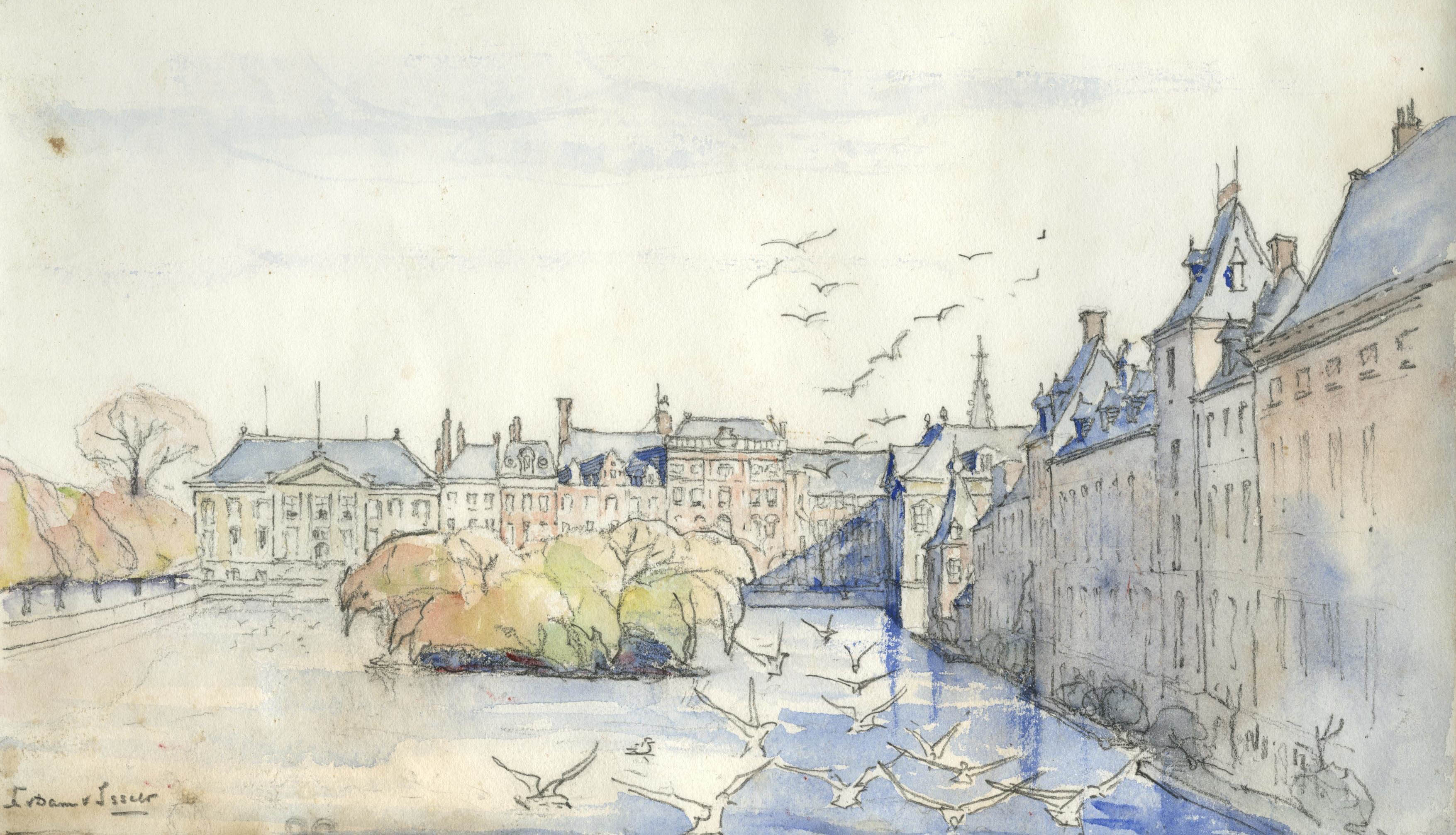 De Hofvijver gezien naar de Korte Vijverberg, Lucie van Dam van Isselt -