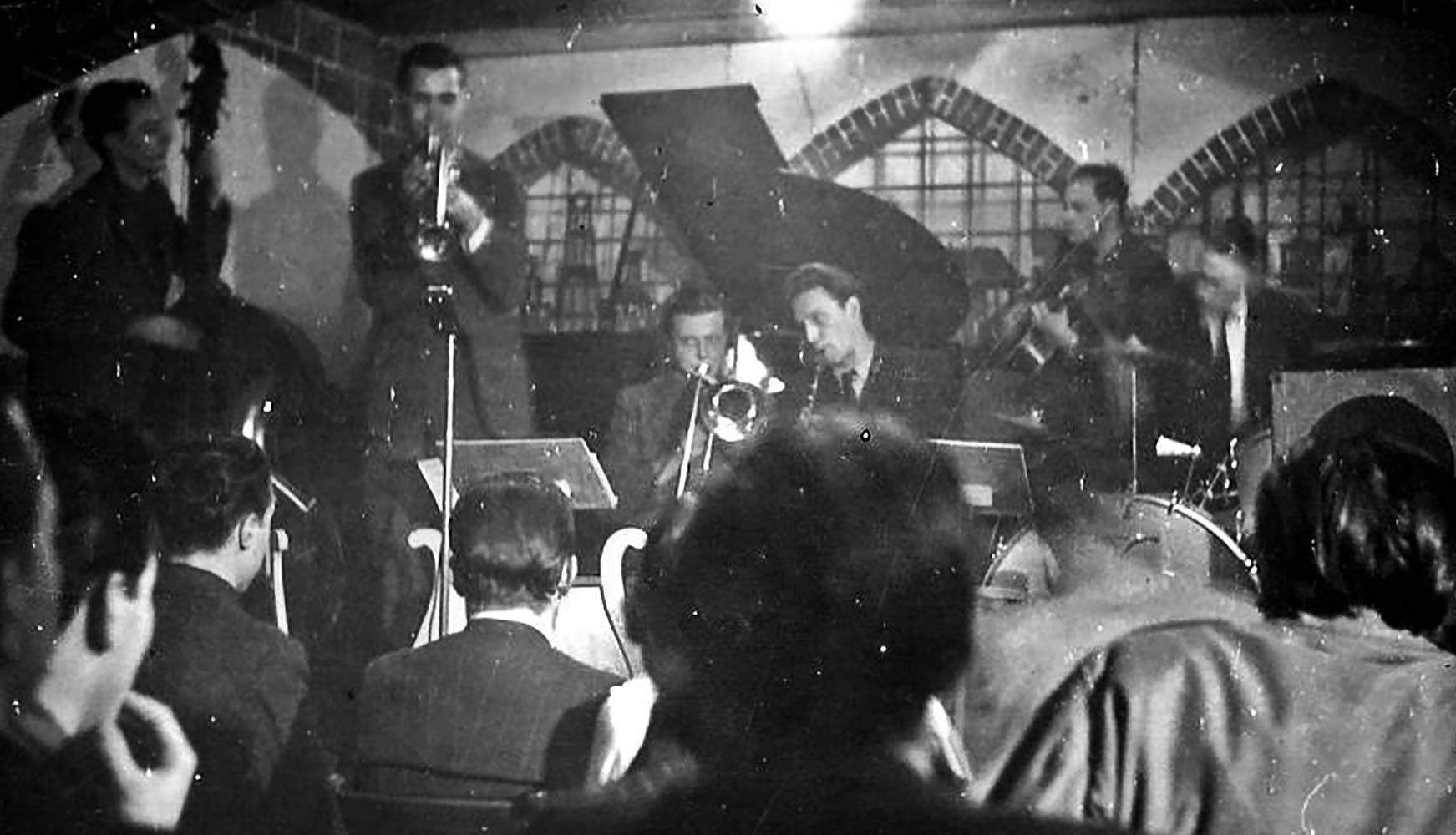 Dutch Swing College Club in de Nieuwstraat 21, café Zillerthal in 1945 -