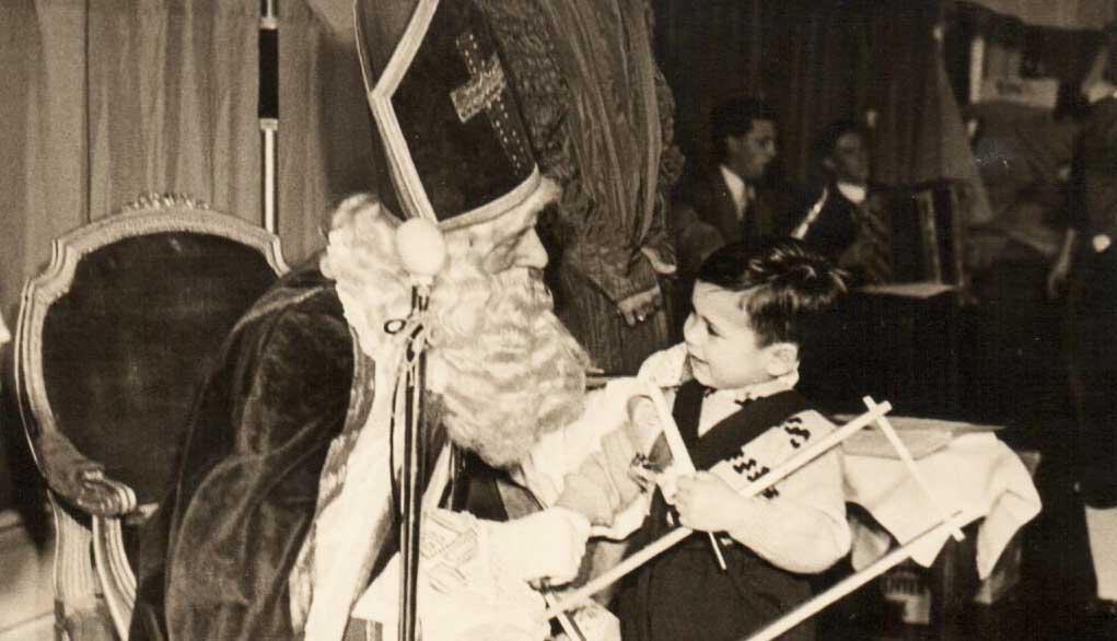 Dan mijn eerste Sinterklaasherinnering. Met opa en oma werd bij ons thuis al een soort surprise-avond gehouden die me lang zou heugen. Ik pakte een cadeautje uit, waar een kaplaars met stront onder de hak in zat. Blijkbaar had ik weer eens in de hondenpoep getrapt, stond in het gedicht. Ook toen al had je last van poep op de stoep. In de laars zat het cadeau, maar eerst moest ik een hap ‘poep’ eten. Ik huilde dat ik dat vies vond en dit niet wilde. Maar zoals toen nog gewoon was, moest je gehoorzamen. Uiteindelijk nam ik een hapje en bleek het ontbijtkoek te zijn. Dit was de humor van mijn opa. Ook oma had humor. Zij had voor mijn vader een grote aardappel ingepakt. Mijn vader had daarentegen niet veel humor en gooide de aardappel later over het balkon. Enige dagen daarna vroeg oma hem of hij het tientje in de uitholling nog gevonden had. De aardappel werd gezocht, maar nooit gevonden.
