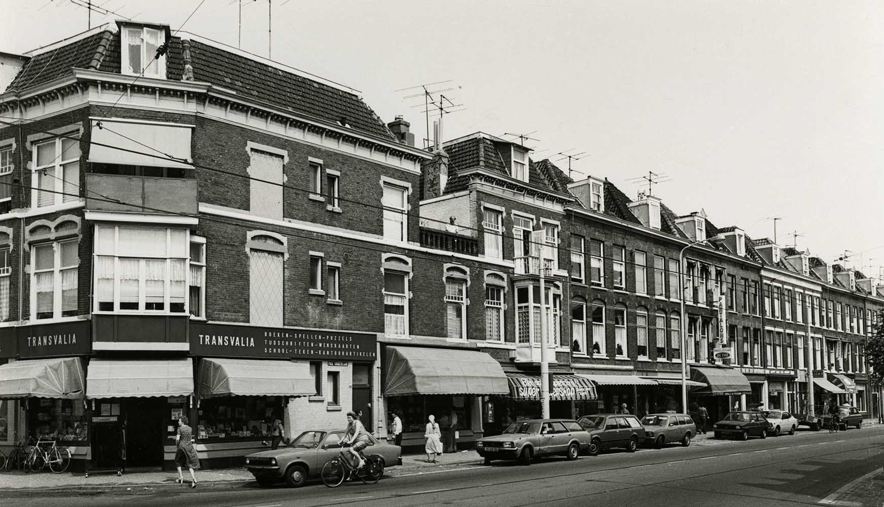 Paul Krugerlaan 122-182, gezien van de Steijnlaan richting Engelenburgstraat. Foto uit 1980, Dienst voor de Stadsontwikkeling, collectie HGA -