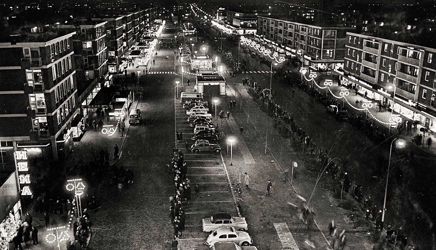 De feestelijk verlichte Leyweg rond 1962 -
