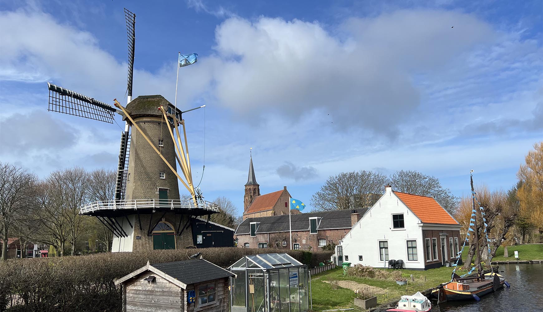 De uit 1721 stammende molen de Korenaer. Achter de witte molenaarswoning bevindt zich in de oude korenschuur het Loosduins Museum -